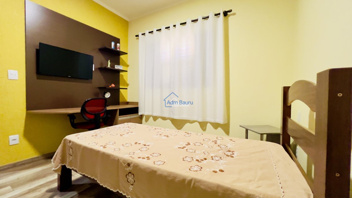 O imóvel também oferece diversos diferenciais, churrasqueira para você aproveitar nos momentos de descontração, tenha noites de sono tranquilas e dias frescos em um imóvel com ar-condicionado e tenha a tranquilidade de saber que seu lar está protegido.